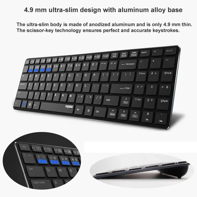 New Rapoo E9300 Bluetooth/2.4G Multi-Media 5.6mm Ultra-Slim Wireless Keyboard for Laptops Desktops PC with 3 Devices Connect : Click Here
